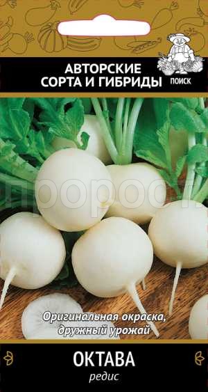 Высокоурожайный сорт с дружной отдачей урожая. Период от всходов до технической спелости 31-35 дней. Розетка листьев крупная. Корнеплод округлый, гладкий, белого цвета. Масса 25 г, диаметр 3-4,5 см. Мякоть плотная, средне-острая, отличного вкуса. Длительное время сохраняет высокие вкусовые качества. Слабо реагирует на длину дня. Устойчив к цветушности. В осеннем обороте корнеплоды достигают максимального размера.
